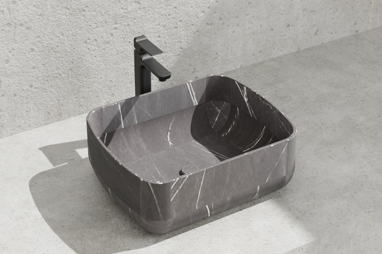 The Medini over-the-counter basin in Pietra Grey Matte: